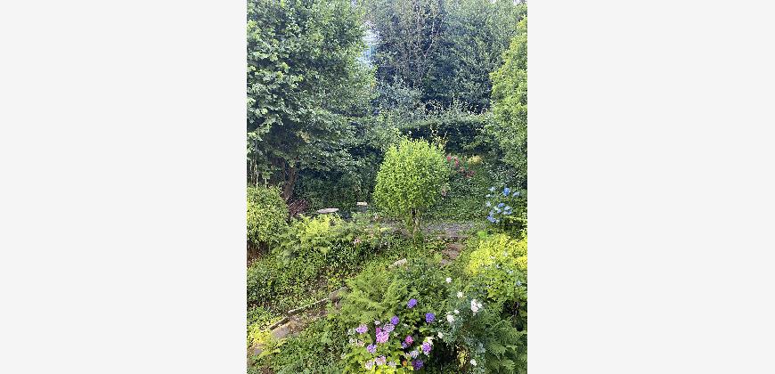 Zugang zu einem kleinen Garten in Hanglage ist über das Erdgeschoss möglich