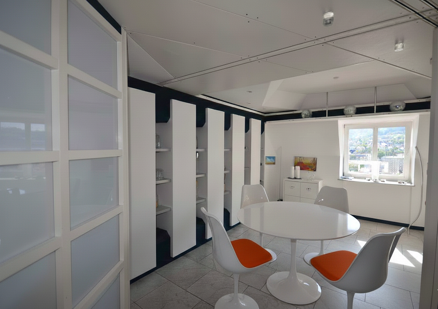 - Essbereich und Schlaf/Arbeitsbereich durch Schiebewände trennbar