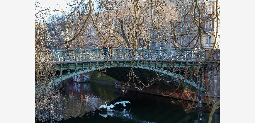 Die Wohnung befindet sich in zentraler Lage in Berlins Stadtteil Friedrichshain-Kreuzberg. Sie liegt in einer verkehrsberuhigten Straße direkt am Landwehrkanal mit Blick auf den Urbanhafen. Mehrere U-Bahnhöfe sind in der Nähe und eine gute Anbindung nach Berlin-Mitte oder City-West ist gegeben. Sowohl Schulen als auch andere Einkaufsmöglichkeiten für den täglichen Bedarf sind in unmittelbarer Nähe. Zudem gibt es in der direkten Nachbarschaft ein vielfältiges Angebot an guten Restaurants. Rundum befindet sich die Wohnung in einer ruhigen Gegend mit einer Vielfalt an Freizeitmöglichkeiten.
