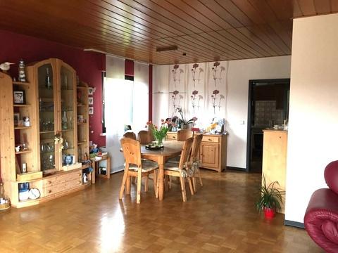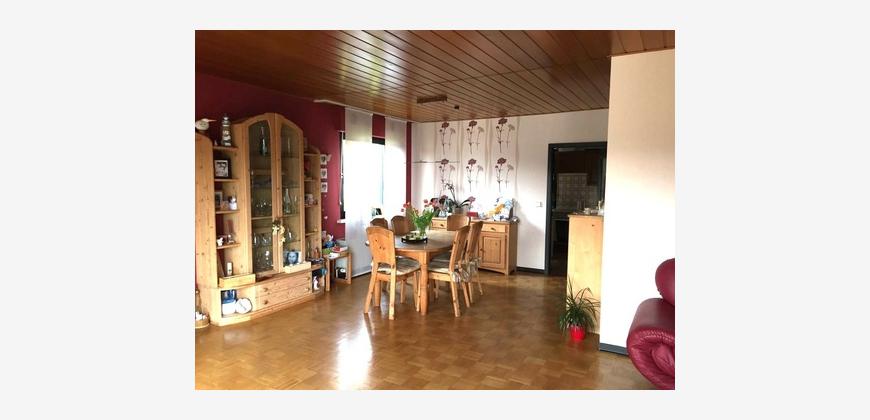 Das Herzstück bildet das weitläufige Wohn- und Esszimmer mit hochwertigem Stabparkett. Große Fensterflächen und die große Panoramatür schaffen eine helle, warme Atmosphäre und öffnen den Blick in die Ferne. Von hier aus gelangen Sie auf den ca. 20 m² großen Balkon - ein Logenplatz über dem Ort.