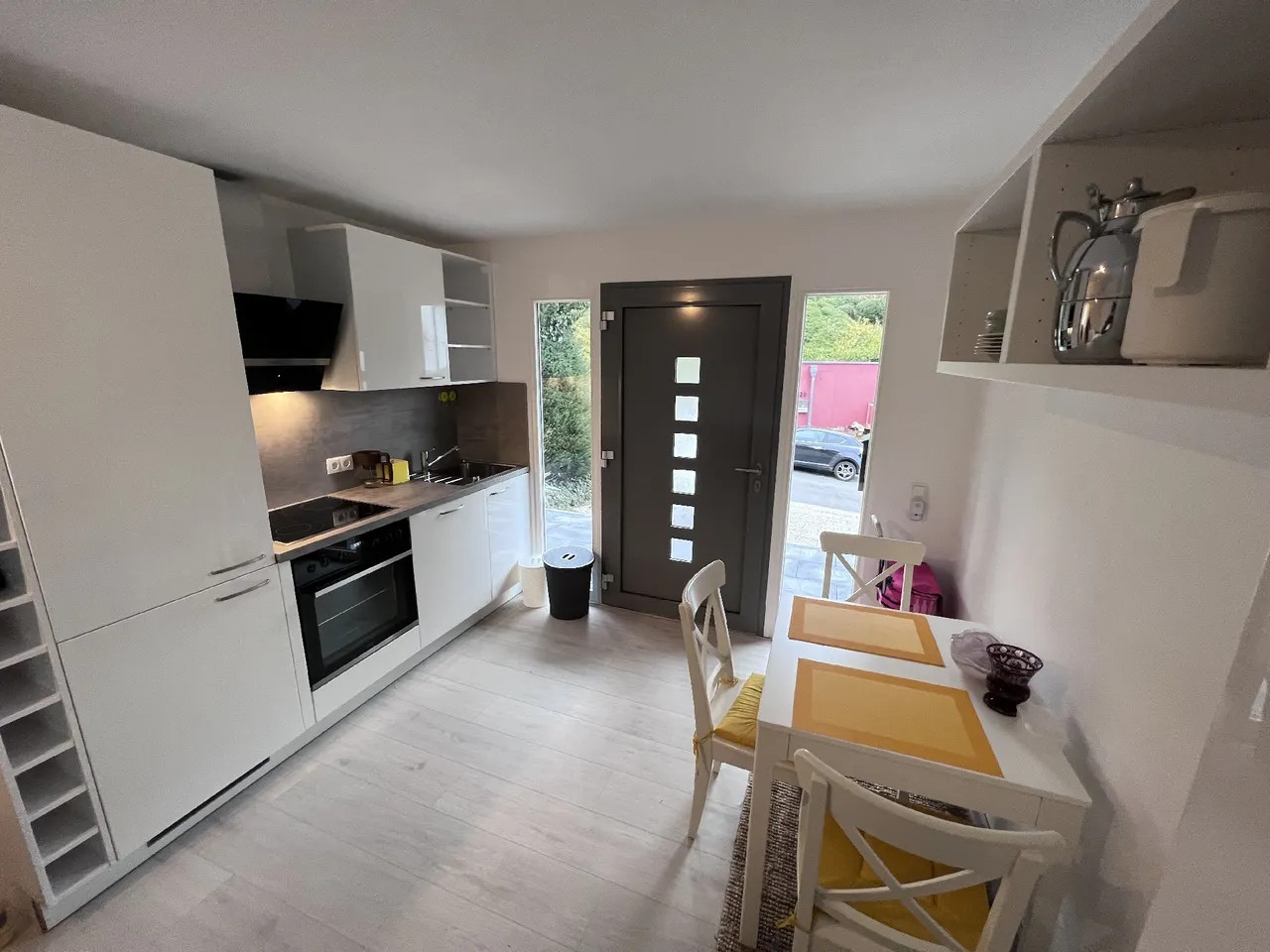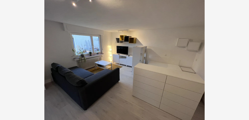 Die im Jahr 2021 fertiggestellte Wohnung ist vollständig möbliert und somit direkt bezugsbereit. Sofa, Bett, Schrank, Regale und Esstisch sind bereits vorhanden. Die integrierte Küchenzeile fügt sich harmonisch in das Wohnkonzept ein. Helles Laminat sowie, weiße Wände verleihen den Räumen eine moderne und freundliche Atmosphäre.
