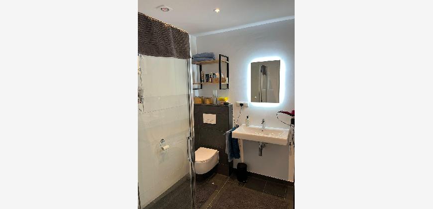 -neues Badezimmer mit Regendusche (Geberit) und freistehender Badewanne