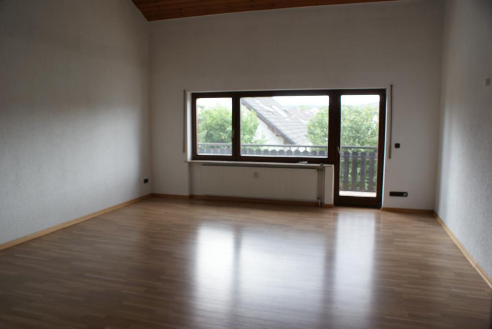 Das Wohnzimmer ist groß und bis zum Dach hin offen. Vom Wohnzimmer aus gelangt man auf den Balkon