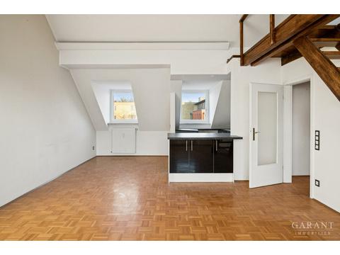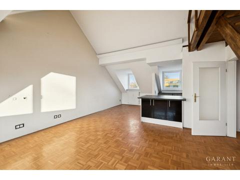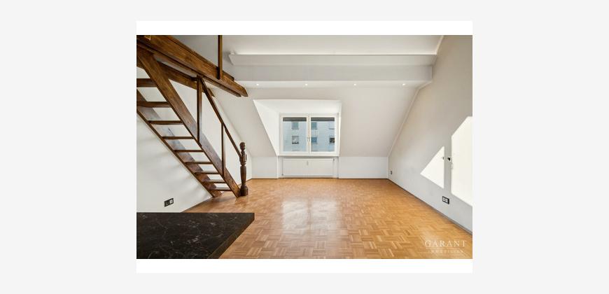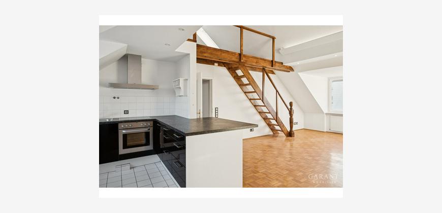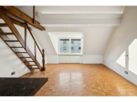 Diese helle und sonnige 2 Zimmer-Dachgeschoss-Wohnung vereint urbanes Leben mit einem besonderen Wohnambiente. In der 4. Etage empfängt Sie hier ein Gefühl von Ruhe, Weite und Rückzug, während die Stadtmitte von München mit all ihren Möglichkeiten nicht weit entfernt ist.