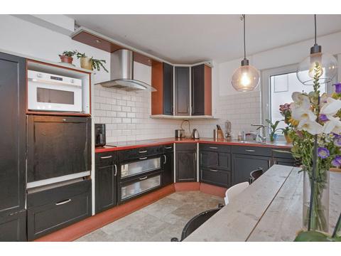 Küche mit EBK, Wohnzimmer, Diele, Gäste-WC, Wäscheraum, Büro.