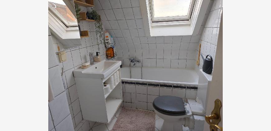 Die Raumaufteilung auf einem fast quadratischen Grundriss entsprechend dem Zuschnitt der 60er Jahre, d.h. Elternschlafzimmer Wohnzimmer, Küche, Bad - alles zentral vom Flur erschlossen.