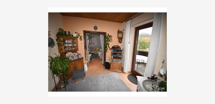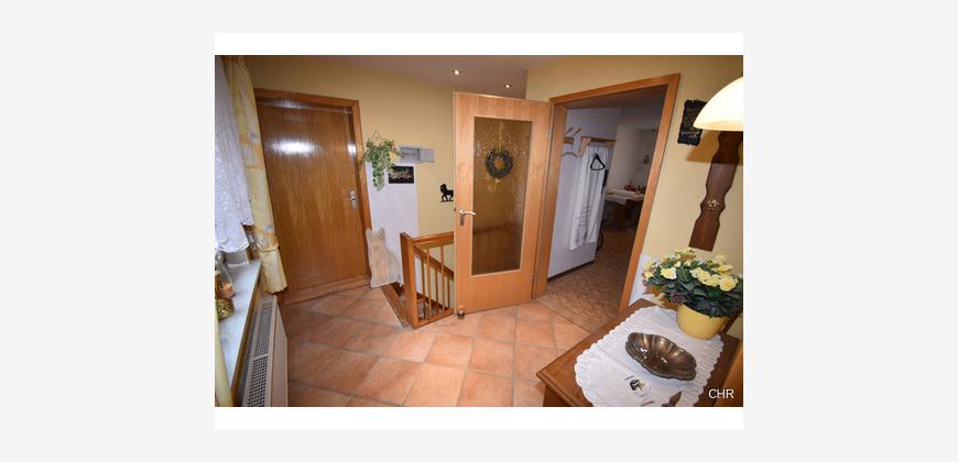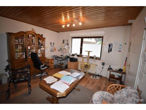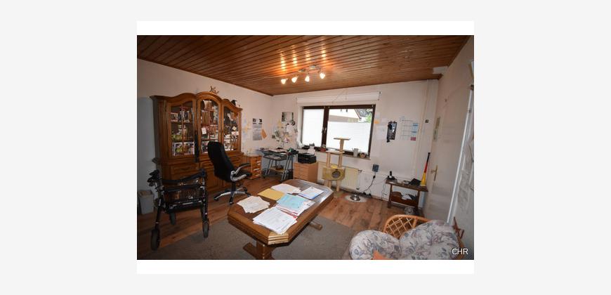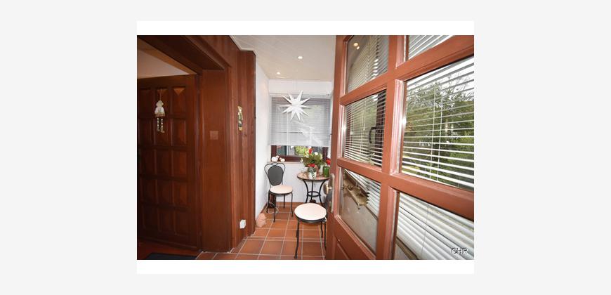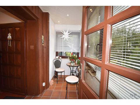 Mitte der Achtziger Jahre wurde im Eingangsbereich eine Veranda angebaut. Von der Veranda aus kommt man in einen großzügigen Flur mit dem Treppenhaus ins Obergeschoss. Hier im Erdgeschoss befindet sich gleich links ein Büro, ideal geeignet für das heute so oft geführte Homeoffice.