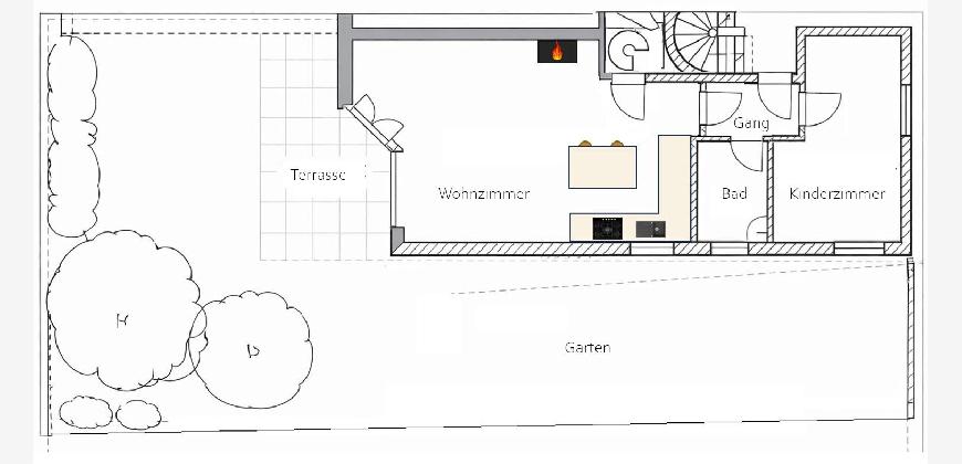 naturnaher Umgebung – der Truderinger Forst liegt direkt hinter dem Garten. Die Infrastruktur ist hervorragend: Schulen, Kindergärten, Einkaufsmöglichkeiten sowie
