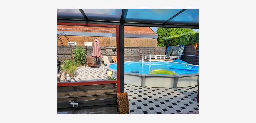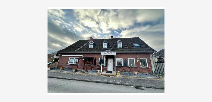 Im Erdgeschoss befindet sich eine ca. 138 Quadratmeter große Gewerbefläche, die aktuell als Restaurant genutzt wird und durch einen gut strukturierten Grundriss mit Gastraum, Kamin, Tresenbereich und Küche überzeugt. Für diese Einheit liegt bereits eine vorläufige Bauvoranfrage zur Nutzungsänderung der gastronomischen Nutzung vor. Somit besteht die Möglichkeit, die Fläche perspektivisch auch zu Wohnzwecken umzubauen, was zusätzliche Flexibilität und Wertsteigerungspotenzial eröffnet. Ein überdachter Biergarten, ein Außenpool sowie mehrere Gartenhäuser ergänzen den Außenbereich.