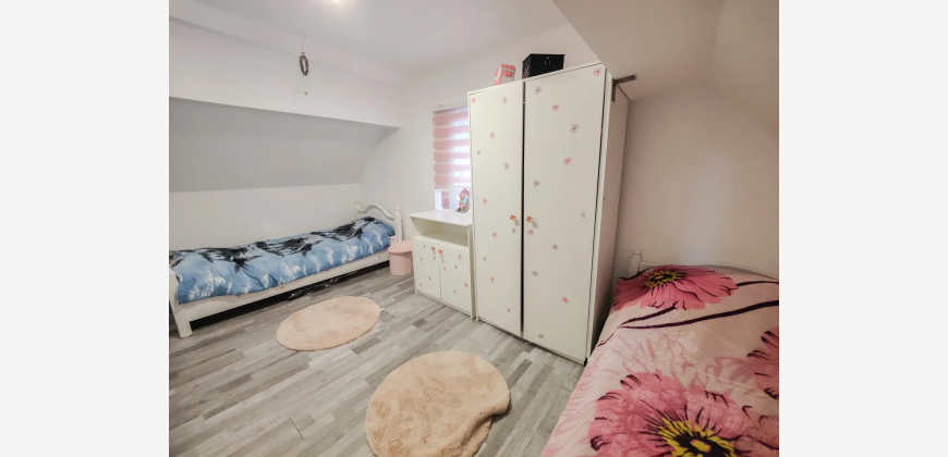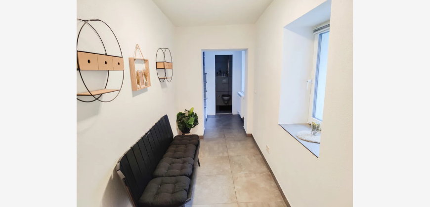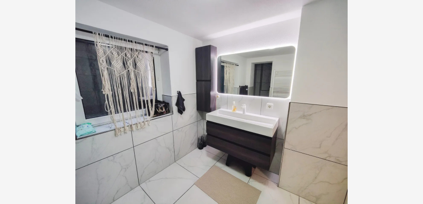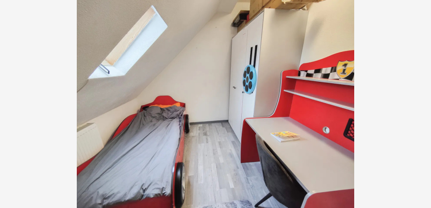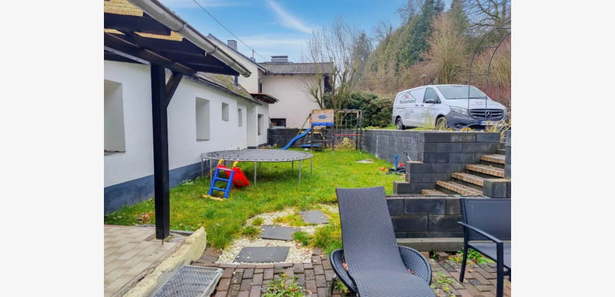 Das Hausgrundstück hat eine Größe von 392 m² und ein angrenzendes Wiesen/Waldgrundstück ist 1.300 m² groß. Vom Obergeschoss aus gelangen Sie direkt in den Garten, wo eine geräumige Terrasse auf Sie wartet. Hier können Sie Ihre besten Momente mit Freunden und Familie genießen oder einfach in Ruhe entspannen. Außerdem befinden sich in der linken Haushälfte weitere Flächen, die entweder als zusätzlicher Wohnraum oder als separate Einliegerwohnung ausgebaut werden können. Zusätzlich besteht die Option, die Fassade nach Ihren Wünschen zu einem Festpreis neu zu verputzen. Nutzen Sie die Gelegenheit, Ihrer Kreativität freien Raum zu lassen und das Haus ganz nach Ihren Vorstellungen zu gestalten.