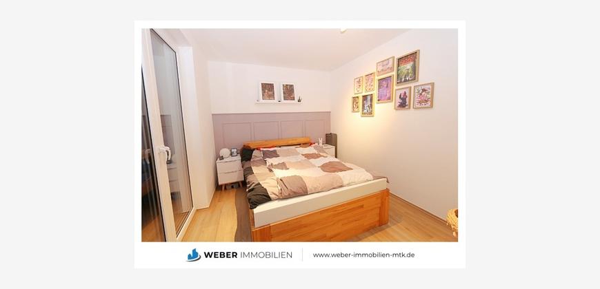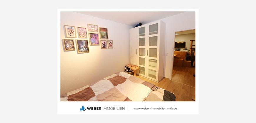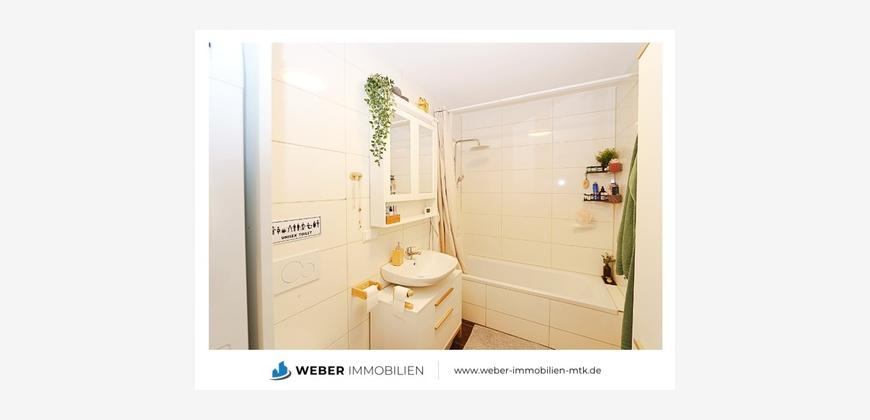 Vom Wohnzimmer aus gelangen Sie auch in die beiden mit jeweils fast 11,9 und 11,8 qm großen Schlafzimmer. Beide Zimmer sind durch französische Balkone mit bodentiefen Flügeltüren lichtdurchflutet. Der warme Laminatboden unterstützt die freundliche Atmosphäre der Räume dabei. Über einen kleinen Flur erreichen Sie das innenliegende Badezimmer mit Waschmaschinenanschluu. Die rechteckigen Fliesen sind an den Wänden in zartem beige und am Boden dunkel gehalten. Badewanne, wandhängendes WC und Waschtisch sind weiß gehalten.
