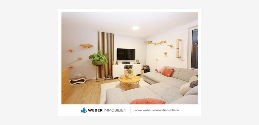 - Wohn-Essbereich (32,7 qm), eichefarbener Laminatfußboden