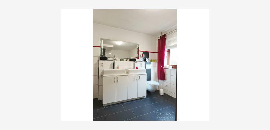 Das in Massivbauweise errichtete Haus wurde regelmäßig modernisiert und präsentiert sich in einem sehr guten Zustand. Durch die Hanglage befindet sich im Erdgeschoss eine vollständig renovierte Einliegerwohnung mit zwei Zimmern, Küche, Bad und Vorratsraum (ca. 64 m²).