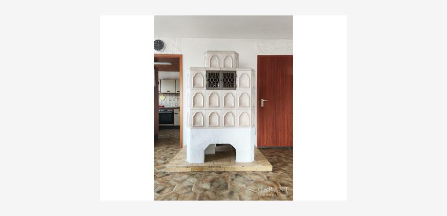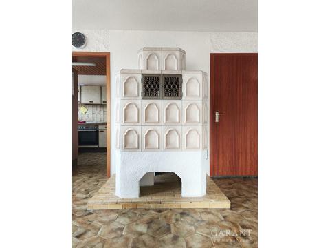Die Hauptwohnung (ca. 102,8 m²) überzeugt durch helle, freundliche Räume. Vom Eingangsbereich mit praktischem Windfang gelangen Sie in den offenen Wohn- und Essbereich mit gemütlichem Kachelofen. Die separate Küche ist mit einer Einbauküche ausgestattet. Balkon mit Weitblick sowie eine Terrasse im rückwärtigen Bereich erweitern den Wohnraum ins Freie.