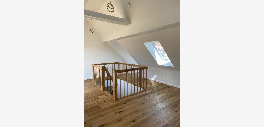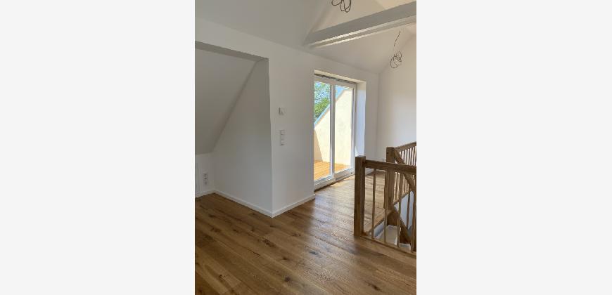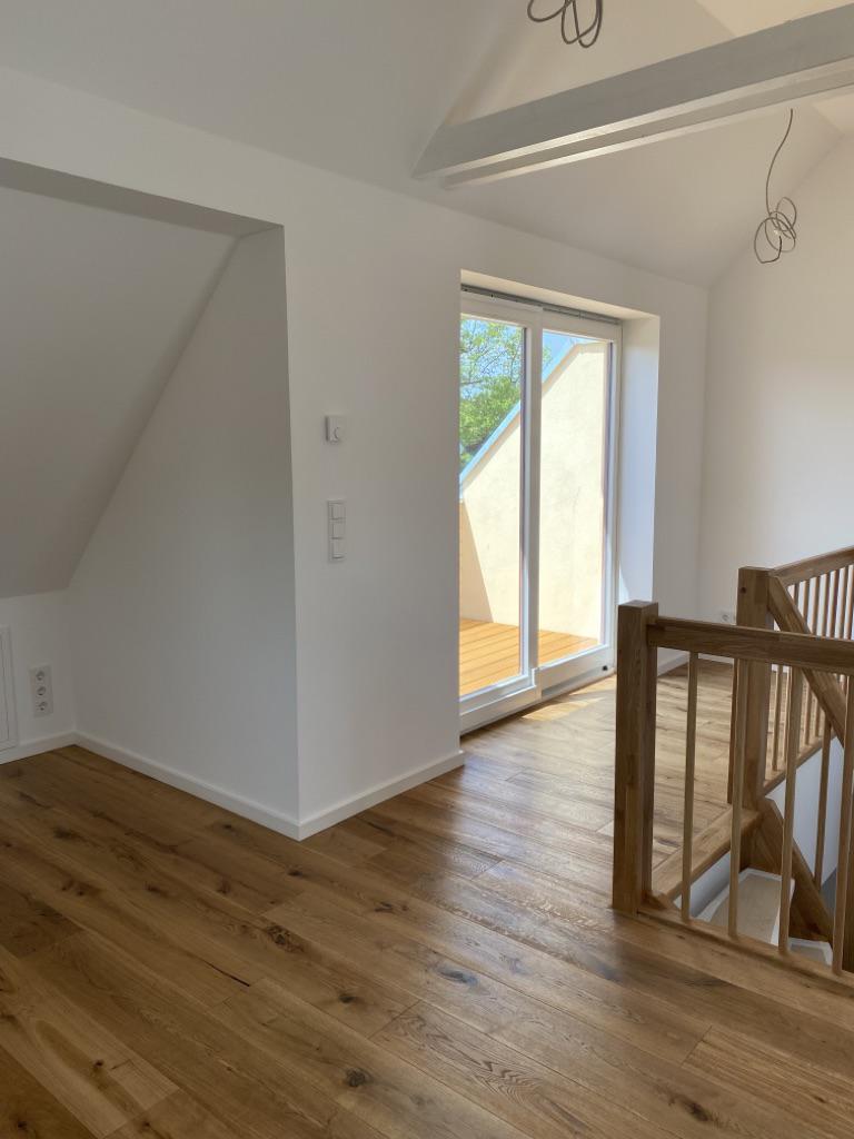 Im Obergeschoss stehen drei gut geschnittene Schlafzimmer zur Verfügung, die flexibel als Kinder-, Arbeits- oder Gästezimmer genutzt werden können. Das Tageslichtbad ist modern ausgestattet und verfügt sowohl über eine Badewanne als auch über eine separate Dusche. Eine weitere Terrasse auf dieser Etage erweitert den Wohnkomfort und bietet zusätzlichen Freiraum im Außenbereich.