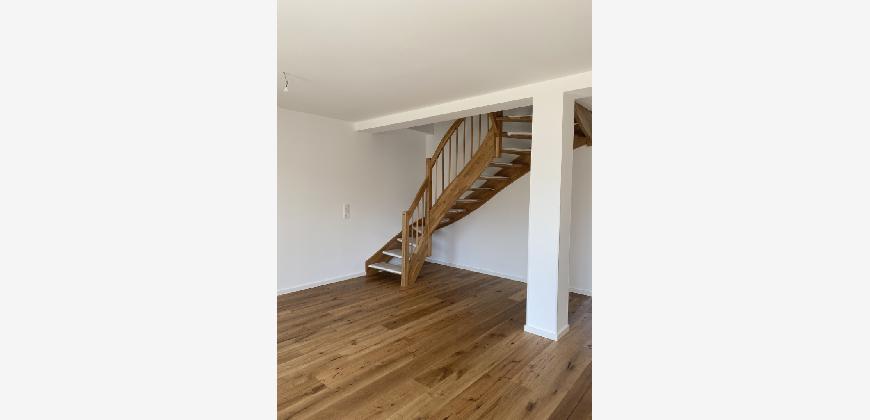Im Erdgeschoss befindet sich der großzügige Wohn- und Essbereich mit direktem Zugang zur Terrasse und dem zugehörigen Gartenanteil. Die offene und helle Gestaltung schafft eine angenehme Wohnatmosphäre und bietet ideale Voraussetzungen für geselliges Beisammensein. Ergänzt wird diese Ebene durch ein Gäste-WC sowie einen praktischen Hauswirtschaftsraum mit zusätzlichen Abstell- und Anschlussmöglichkeiten.