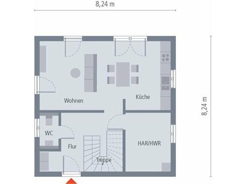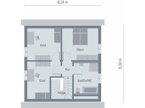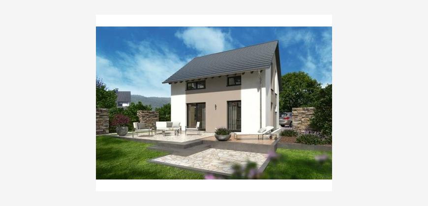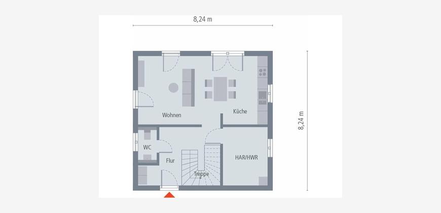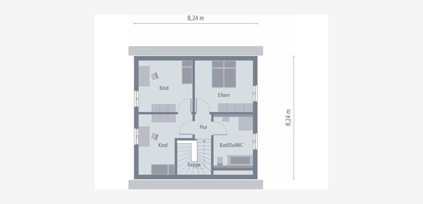 Schlichte Eleganz gepaart mit einem durchdachten Raumkonzept - das zeichnet das Einfamilienhaus Design 9.2 aus. Die geradlinige Architektur wird noch unterstrichen durch die zweifarbige Fassadengestaltung, die dem Haus eine besondere Note verleiht und sie optisch noch einmal zusätzlich aufwertet. Geradlinig geht es auch im Inneren weiter. Herzstück im Erdgeschoss ist der große und lichtdurchflutete Wohn-Ess-Koch-Bereich mit direktem Zugang zum Garten. Dieser ist räumlich getrennt von Hauswirtschaftsraum und Gäste-WC. Von der geräumigen Diele, in der ausreichend Platz für eine Garderobe ist, führt eine Treppe ins Obergeschoss. Hier wird der Wohnraum perfekt ausgenutzt. Zwei Kinderzimmer, ein Schlafzimmer für die Eltern sowie ein geräumiges Bad mit Wanne, Dusche und WC bieten hier einen idealen Rückzugsort. Auf einer Wohnfläche von rund 107 m² ist hier ein gemütlicher und komfortabler Wohlfühlort für die ganze Familie entstanden.