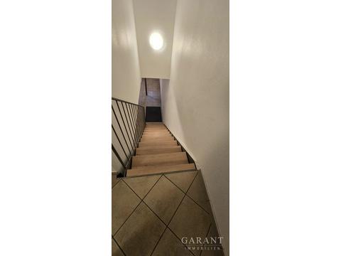 Die Maisonette-Wohnung erstreckt sich über zwei Ebenen im Erd- und Obergeschoss mit jeweils separaten Eingängen und bietet daher eine interessante, nicht alltägliche Grundrissgestaltung.