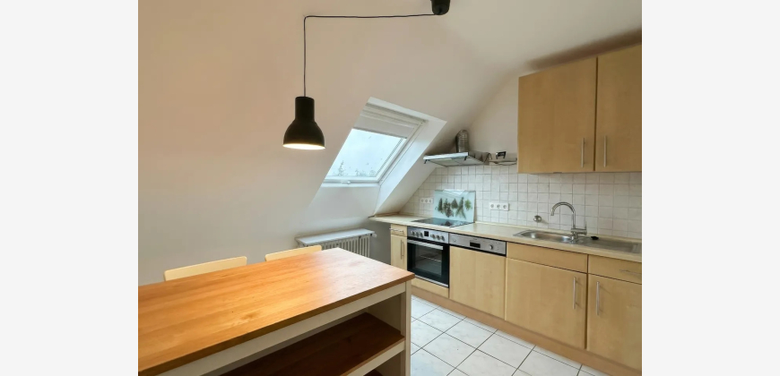 Die separate Küche ist funktional geschnitten und bietet ausreichend Arbeits- und Stauraum. Durch das Dachflächenfenster entsteht auch hier ein angenehmes, natürliches Licht.