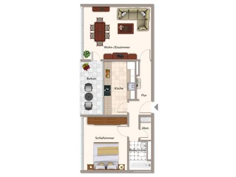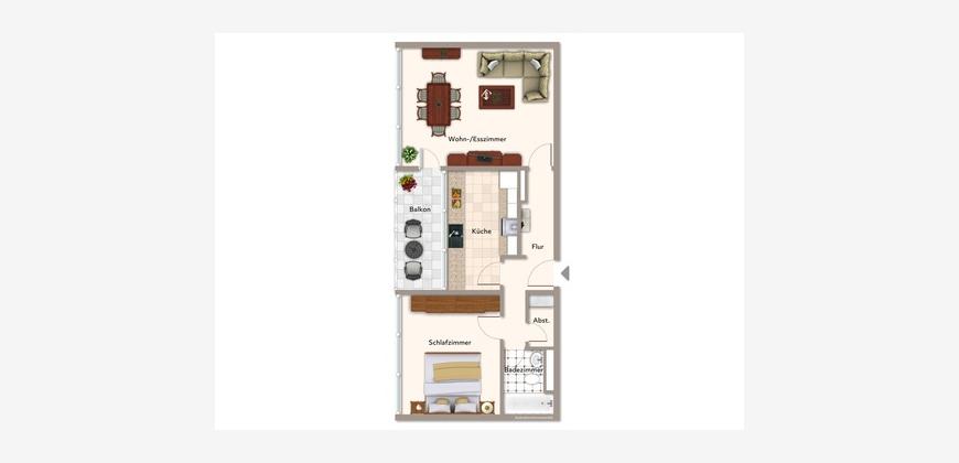 Diese hübsche 2-Zimmerwohnung wurde 2020 renoviert. Der große Balkon bietet einen schönen Blick ins Grüne. Die Wohnung befindet sich im 6. Obergeschoss, im Haus sind zwei Fahrstühle vorhanden. Ein Hausmeister rundet das Angebot ab.