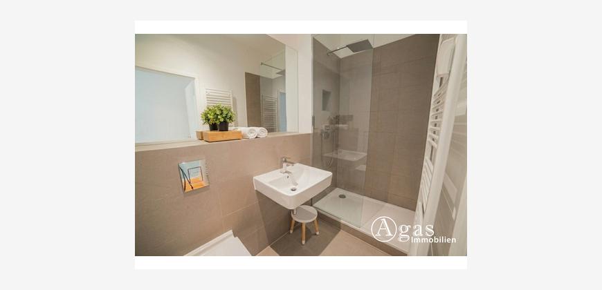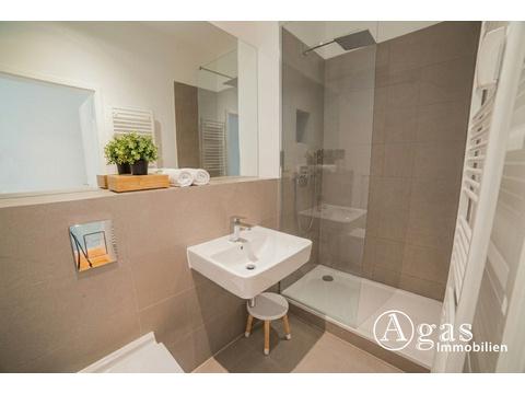 Ein besonderes Highlight ist das stilvoll gestaltete Badezimmer, das mit modernen Materialien und klaren Linien überzeugt. Die zeitgemäße Ausstattung schafft eine hochwertige und gepflegte Atmosphäre und bietet angenehmen Komfort im täglichen Gebrauch.