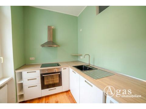 Die Küche ist in den Wohnraum integriert und fügt sich harmonisch in das Gesamtkonzept der Wohnung ein. Die Einbauküche ist bereits vorhanden und verbleibt in der Wohnung.
