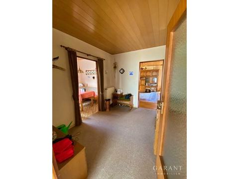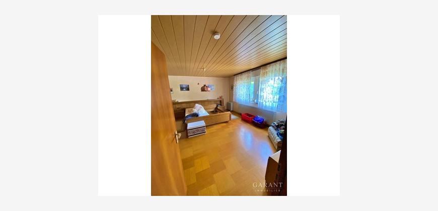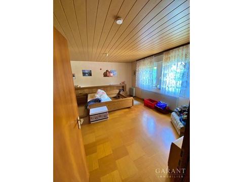 Besonders hervorzuheben ist das Wohnzimmer mit direktem Zugang zur Terrasse. Rund um das Haus erstreckt sich ein weitläufiger Garten, der mit seinen vielfältigen Gestaltungsmöglichkeiten begeistert: ob eigener Pool, ein liebevoller Gemüsegarten oder eine grüne Oase zum Entspannen - hier können Sie Ihren Ideen freien Lauf lassen.