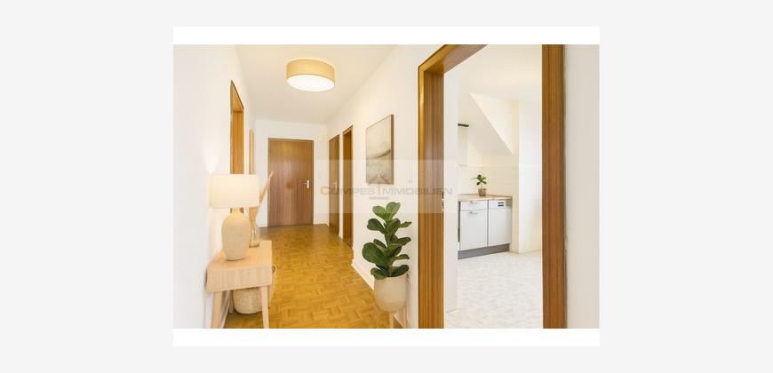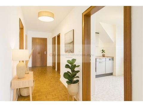 Durch die hochangestellten Dachschrägen entstehen in der gesamten Wohnung vielseitige Stellflächen und zusätzliche Abstellmöglichkeiten für Ihre Möbel, ohne den Wohnkomfort einzuschränken.