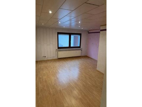 Zur Wohnung gehören ein deckenhoch gefliestes Badezimmer, ein zentraler Flur sowie eine Küche mit Platz für einen Essbereich. Zusätzlich steht ein weiteres Zimmer mit eigenem WC zur Verfügung, das über einem separaten Eingang zugänglich ist – ideal als Gästezimmer, Büro, Hobbyraum oder für eine teilautarke Nutzung.