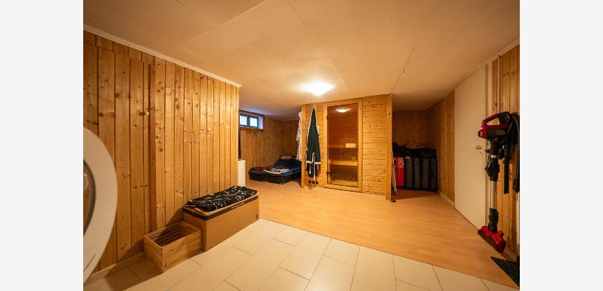 Der vollunterkellerte Bereich überzeugt mit stilvoller Kellerbar und eigenem Wellnessbereich mit Sauna – Ihre private Entspannungsoase. Die Garage mit direktem Zugang zum Garten macht den Alltag praktisch und komfortabel.
