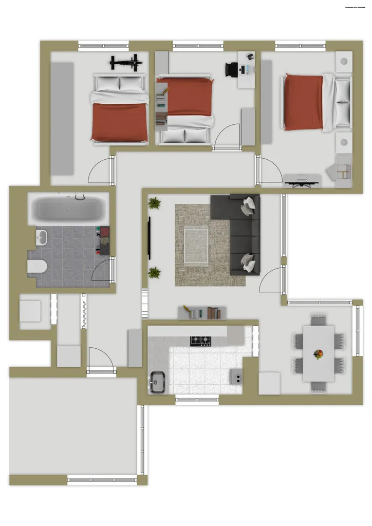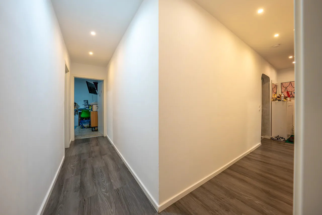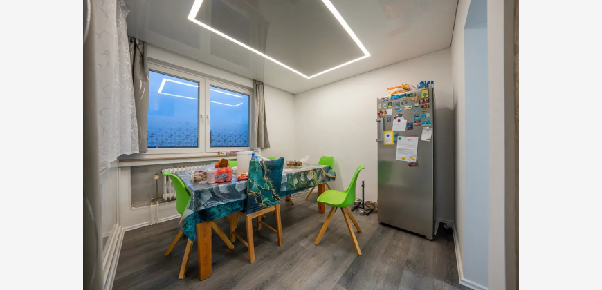 Diese charmante Eigentumswohnung mit einer Wohnfläche von ca. 95 m² vereint Behaglichkeit, Struktur und ein harmonisches Wohngefühl. Sie befindet sich im 3. Obergeschoss eines Mehrfamilienhauses aus dem Baujahr 1964 und bietet damit eine solide Grundlage sowie ein ruhiges Wohnumfeld. Der offen gestaltete Wohn- und Essbereich bildet das Herzstück der Wohnung. Die fließende Verbindung zur angrenzenden Küche schafft eine angenehme Großzügigkeit und lädt zu geselligen Momenten ein. Von hier aus gelangen Sie auf den überdachten Balkon, der Ihnen einen geschützten Außenbereich bietet – ideal für entspannte Stunden und kleine Auszeiten vom Alltag. Die drei Schlafzimmer eröffnen vielfältige Nutzungsmöglichkeiten: Ob Familienzimmer, Homeoffice oder kreativer Rückzugsort – jedes Zimmer hat seinen eigenen Charakter und kann individuell gestaltet werden. Das innenliegende Badezimmer ist mit einer Badewanne ausgestattet und bietet einen praktischen sowie komfortablen Raum für die tägliche Routine. Insgesamt präsentiert sich die Wohnung als ein Ort mit klarer Struktur, ruhigem Wohnfluss und flexiblen Entfaltungsmöglichkeiten – ideal für Menschen, die ein ausgeglichenes und wohnliches Zuhause suchen.