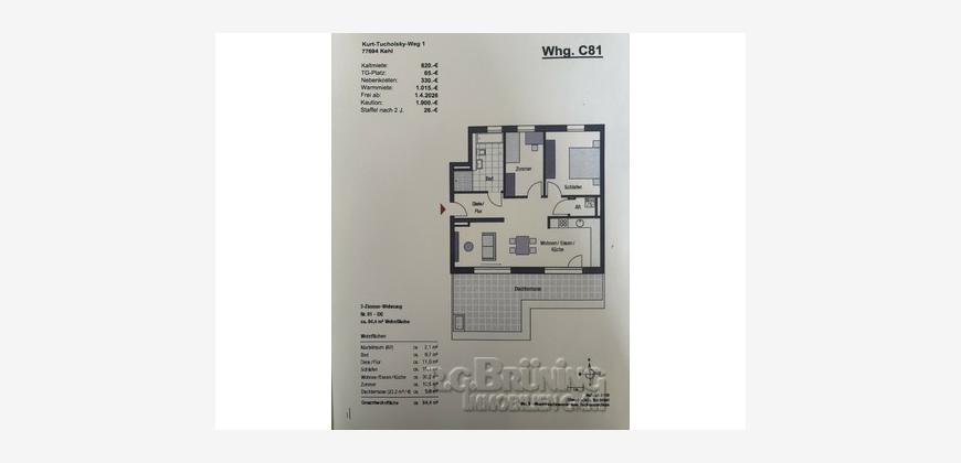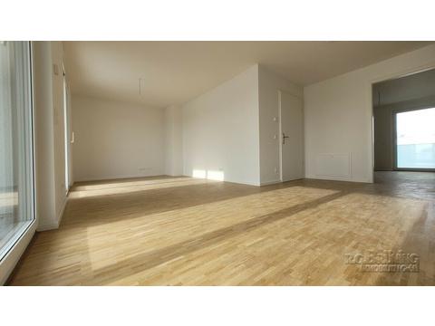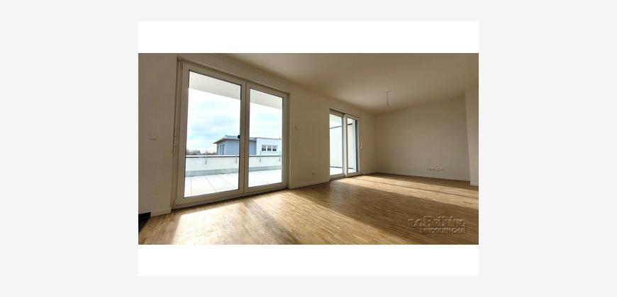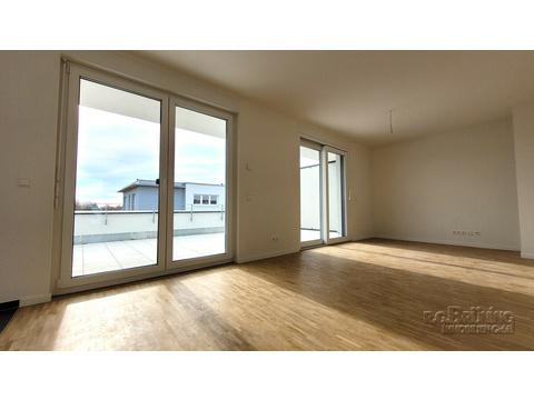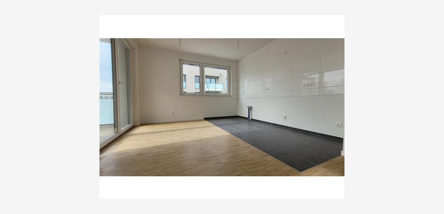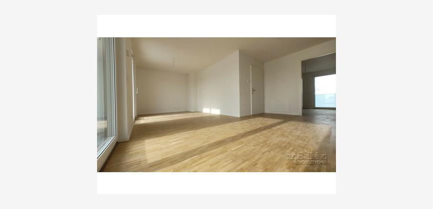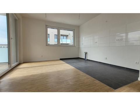 Die offene Küche (ohne Einbauküche) fügt sich toll in das Wohnzimmer ein. Auf der Terrasse mit Südausrichtung können Sie die Sonne genießen. Bitte beachten Sie, dass diese Wohnungen ausschließlich mit Wohnberechtigungsschein ab 75 m² bezogen werden können!