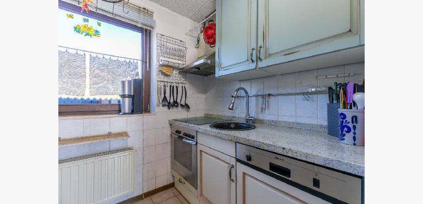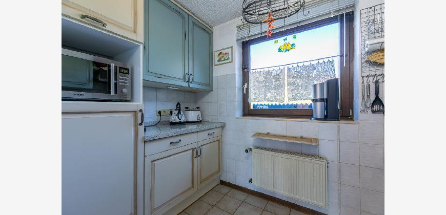 Zurück im Wohnraum gelangt man durch einen offenen Durchgang in die Küche. Die vorhandene Einbauküche ist klein aber fein und bereits im Kaufpreis enthalten. Ebenfalls vom Wohnraum aus zu erreichen sind 2 weitere, separate Räume. Ob sie als Schlafzimmer oder Büro genutzt werden, hier hat man freie Auswahl. Ein gepflegtes Duschbad darf natürlich nicht fehlen und vervollständigt die Wohnfläche dieser Immobilie.