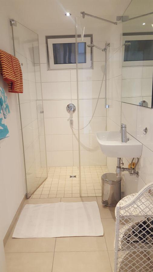 Waschmaschine und Trockner in separatem Waschraum zur Mitbenutzung. Staubsauger, Besen, Wischer, Wäscheständer, Bügelbrett und Bügeleisen - alles vorhanden.