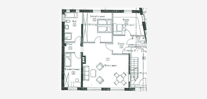 Die 95 m² große Wohnung liegt im Erdgeschoss eines gepflegten Mehrfamilienhauses. Sie verfügt über ein helles Schlafzimmer mit Klimaanlage und ein geräumiges Wohnzimmer, beide mit hochwertigem Parkettboden. Das Badezimmer ist stilvoll gefliest und verfügt eine Whirlpool-Badewanne - perfekt für entspannte Stunden. Die Küche bietet ebenfalls ausreichend Platz. Zusätzlich steht ein Kellerraum zur Verfügung, der zusätzlichen Stauraum bietet. Diese Wohnung ist ideal für komfortables und zeitgemäßes Wohnen.
