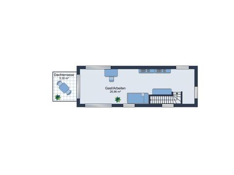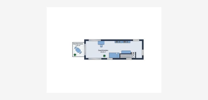 Die Hauptebene verfügt über einen offen gestalteten Wohn-, Ess- und Kochbereich, der den heutigen Anforderungen an modernes Wohnen entspricht. Ein integrierter Abstellraum innerhalb der Wohnung unterstützt die funktionale Nutzung der Fläche. Die zweite Ebene erweitert das Raumangebot um zusätzliche, flexibel nutzbare Wohnfläche, wodurch sich die Einheit auch für anspruchsvollere Mieterzielgruppen eignet.