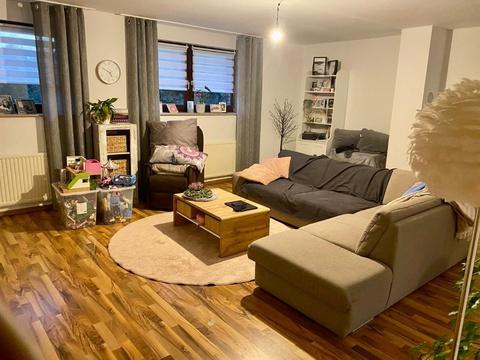 Sie gehen zunächst nach links in das große Schlafzimmer. Der Raum wirkt sofort gemütlich und bietet ausreichend Platz. Von dort aus gehen sie weiter und gelangen in 2 weitere, kleinere Zimmer. Beide lassen sich flexibel nutzen - ob als Kinderzimmer, Büro oder Gästezimmer. Als nächstes betreten sie das großzügige Wohnzimmer. Hier öffnet sich der Raum weit und geht fließend in den Essbereich über. Die vielen Fenster sorgen für Licht und deine angenehme Atmosphäre. Vom Essbereich treten Sie direkt auf den Balkon - ideal für entspannte Stunden im Freien oder einfach nur zum Durchatmen.