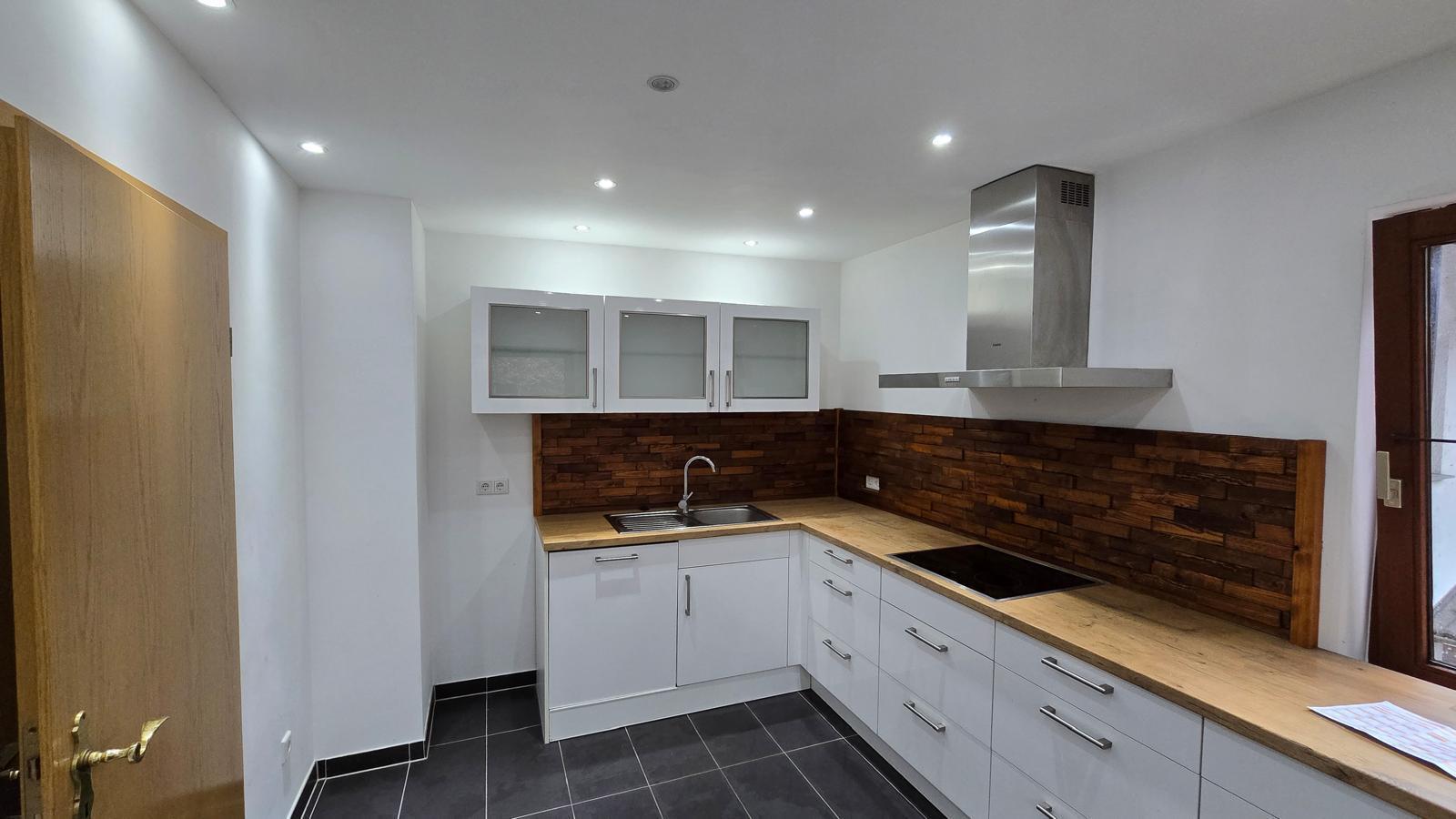 Die eingebaute Küche ist praktisch ausgestattet und bietet ausreichend Platz zum Koche und Arbeiten.