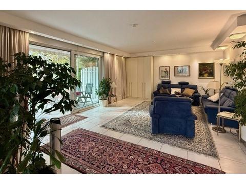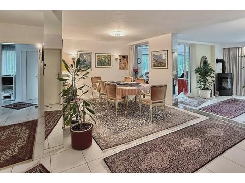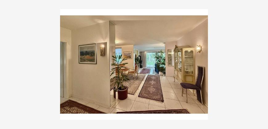 Diese außergewöhnlich großzügige und repräsentative Wohnung erstreckt sich über das Erdgeschoss, Teile des Untergeschosses sowie Teile des Dachgeschosses eines gepflegten Dreifamilienhauses aus dem Jahr 1992. Mit einer Wohnfläche von ca. 190 m² bietet sie viel Platz, eine durchdachte Raumaufteilung und den besonderen Charme eines eigenen Hauses.