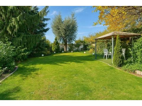 Ein besonderes Highlight ist der großzügige, wunderschön eingewachsene, ca. 370 m² große Garten in ruhiger Randlage. Neben der Hauptterrasse stehen hier ein überdachter Freisitz sowie ein idyllischer Teich zur Verfügung – ein perfekter Ort zum Entspannen und Genießen.