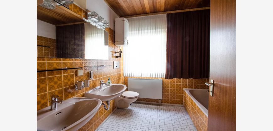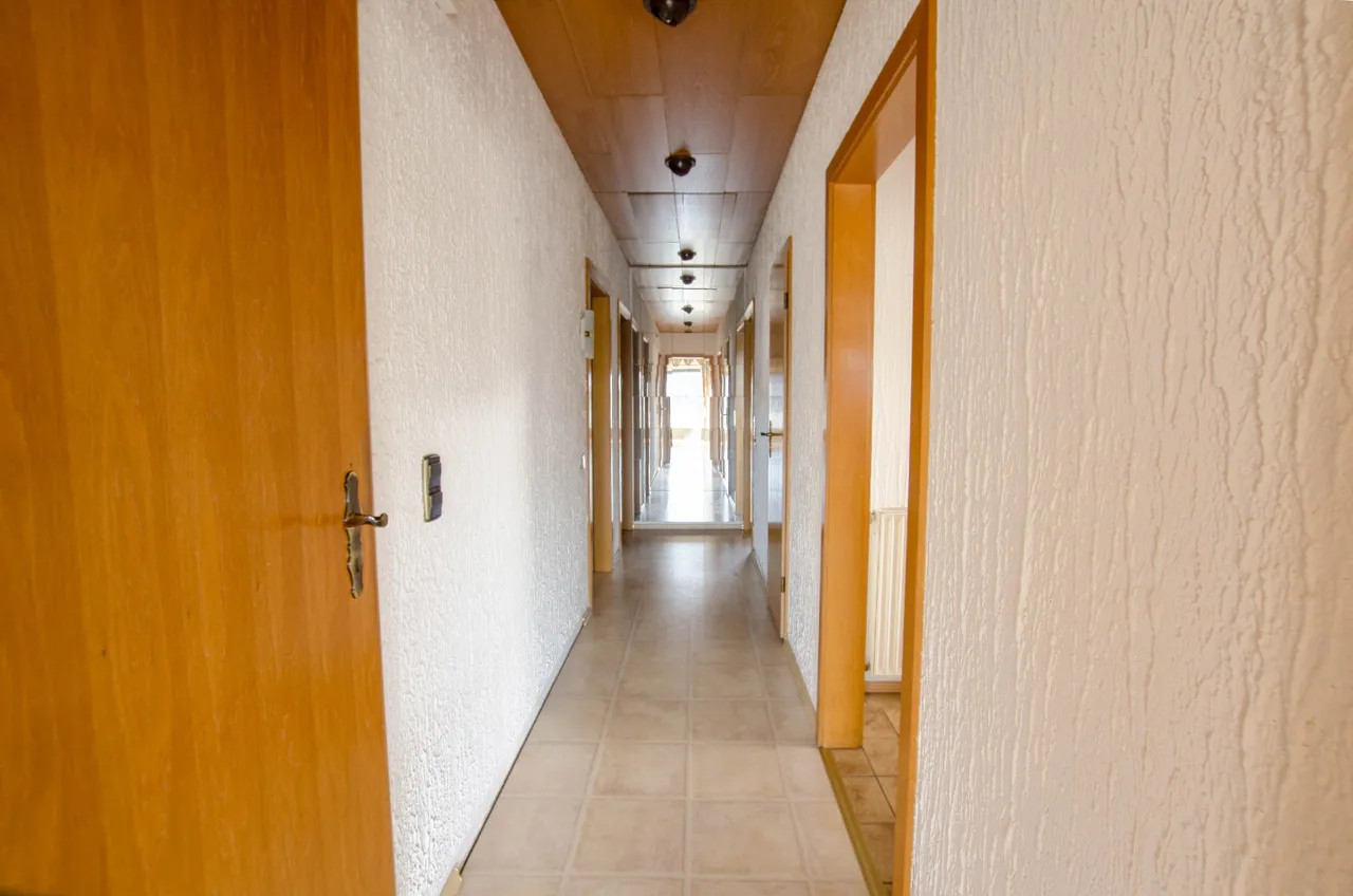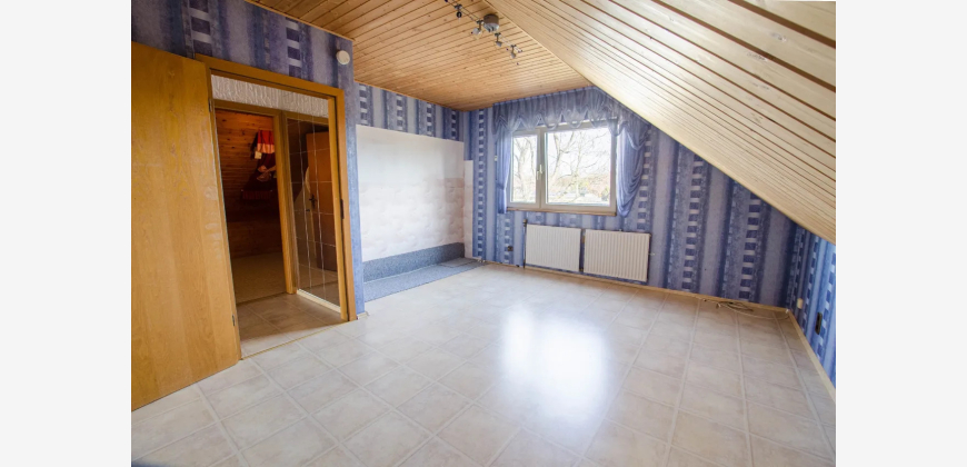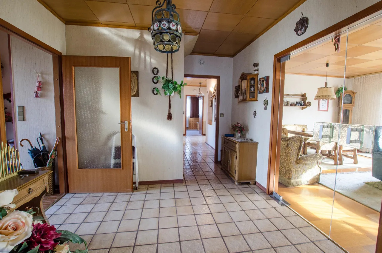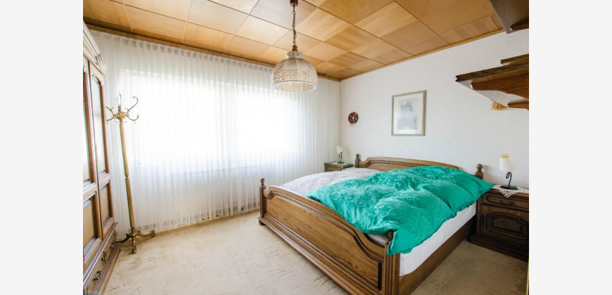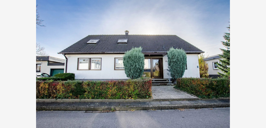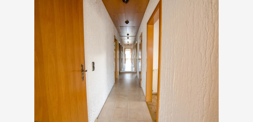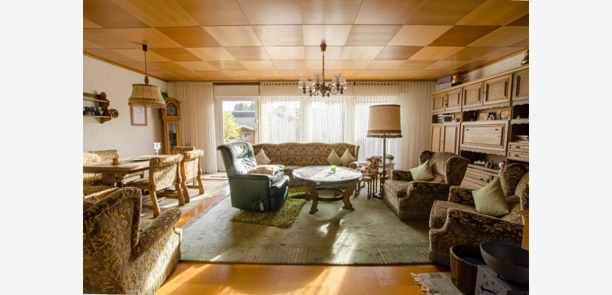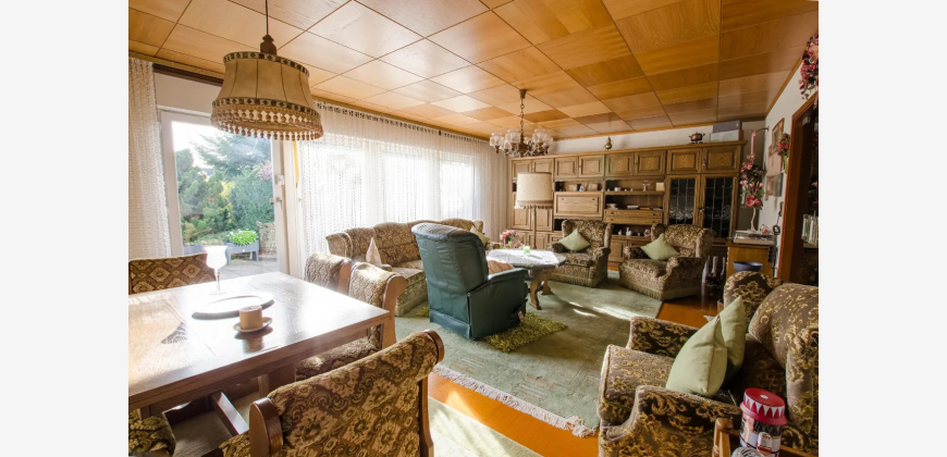 Willkommen in Ihrem neuen Traumhaus! Dieses großzügige Einfamilienhaus, ein Fertighaus der Firma OKAL, aus dem Jahr 1977 bietet Ihnen auf 200 m² Wohnfläche und einem weitläufigen Grundstück von 654 m² alles, was das Herz begehrt. Mit insgesamt 6 Zimmern ist ausreichend Platz für Familie und Freunde. Der einladende Vorraum führt Sie direkt in das lichtdurchflutete Wohnzimmer, das nahtlos zur Terrasse übergeht. Der große Garten ist ein wahres Paradies für Naturliebhaber und bietet unzählige Möglichkeiten zur Gestaltung Ihrer eigenen Oase. Ein praktischer Vollkeller bietet zusätzlichen Stauraum, während die Garage und der PKW-Stellplatz für ausreichend Parkmöglichkeiten sorgen. Das Grundstück ist umgeben von einer ruhigen Nachbarschaft. Dieses Haus wartet darauf, von Ihnen mit Leben gefüllt zu werden. Lassen Sie Ihrer Kreativität freien Lauf und gestalten Sie Ihr persönliches Zuhause!