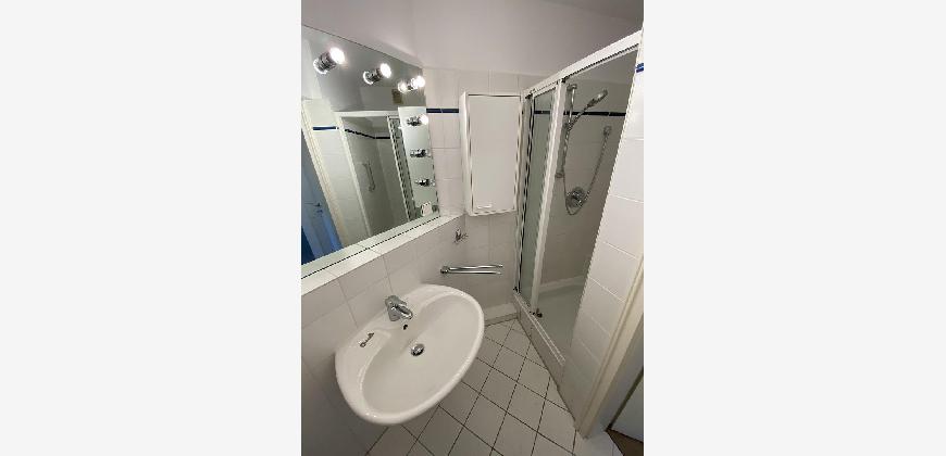 Die Wohnung ist mit einem Duschbad, einer Terrasse, sowie einer Einbauküche ausgestattet.