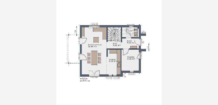 Der Grundriss des Hauses wird so gestaltet, dass er den Anforderungen Ihrer Familie gerecht wird. Große offene Wohnbereiche bieten ausreichend Platz für gemeinsame Aktivitäten und lassen viel natürliches Licht herein. Ein separates Spielzimmer oder ein Kinderzimmer sorgt dafür, dass Ihre Kinder sich entfalten können.