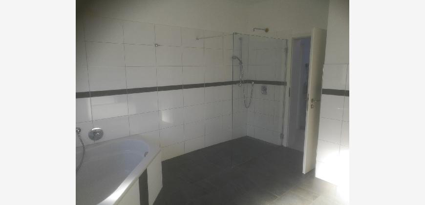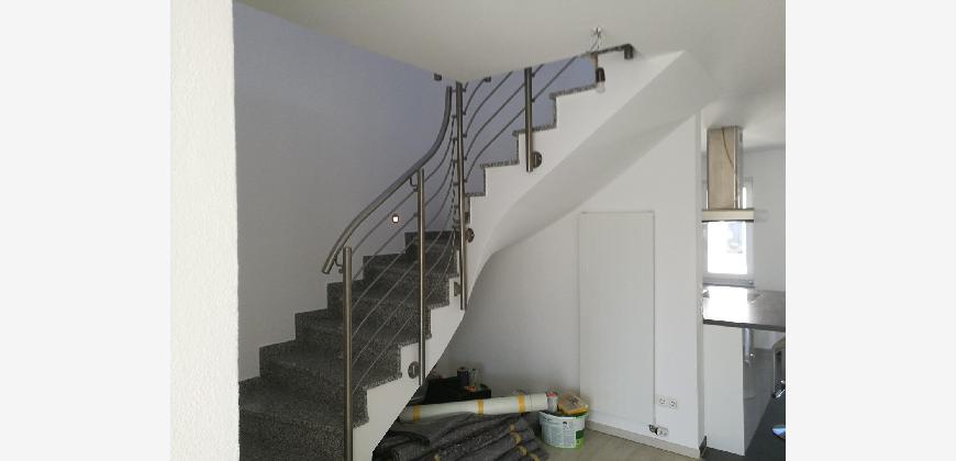 3-fach verglaste Fenster, elektrische Rollläden, Gasbrennwertheizung mit zentraler Warmwasserversorgung. Die Treppen sind mit hochwertigem Granit gestaltet, die Treppengeländer aus Edelstahl und Glas, Wandeinbauleuchten entlang des Treppenverlaufs. Die Wohnräume sind mit Laminat ausgelegt. Die Böden der Küche, Bäder und des Hauswirtschaftsraumes sind gefliest. Wände der Flure und des Treppenhauses sind mit Rauputz versehen. Klingel mit Gegensprechanlage auf jeder Etage. In den 2 Tageslichtbädern sind geräumige Spiegelschränke, integrierte Badmöbel und Handtuchwärmer vorhanden. Im Bad des Dachgeschosses wurden eine große Eckbadewanne, Designerwaschbecken, eine ebenerdige Dusche, Kopfbrause und eine Glasduschwand mit Lotuseffekt eingebaut. Im großen Studio im Dachgeschoss wurde die Decke zum Giebel hin geöffnet. Das große Fenster öffnet den Blick ins Grüne.