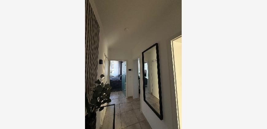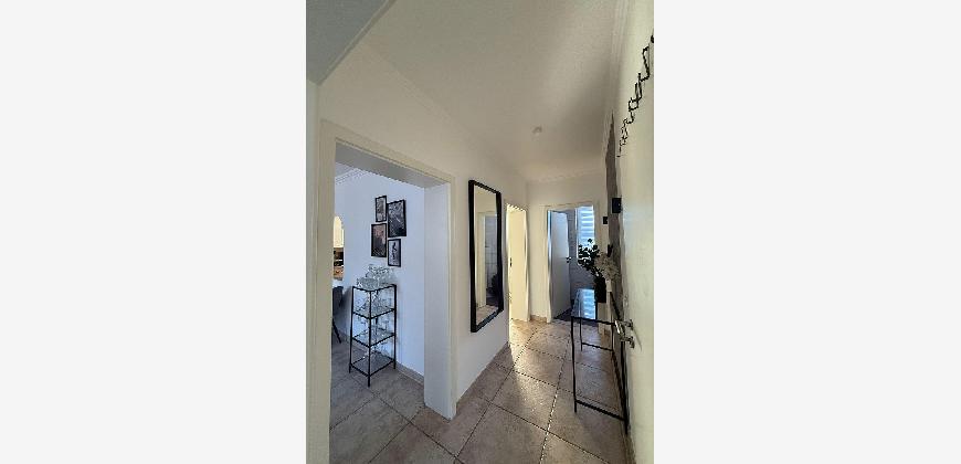 Der Fußboden ist durchgängig mit hochwertigen Fliesen versehen und sorgt für ein harmonisches sowie pflegeleichtes Wohnambiente.