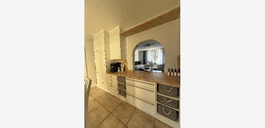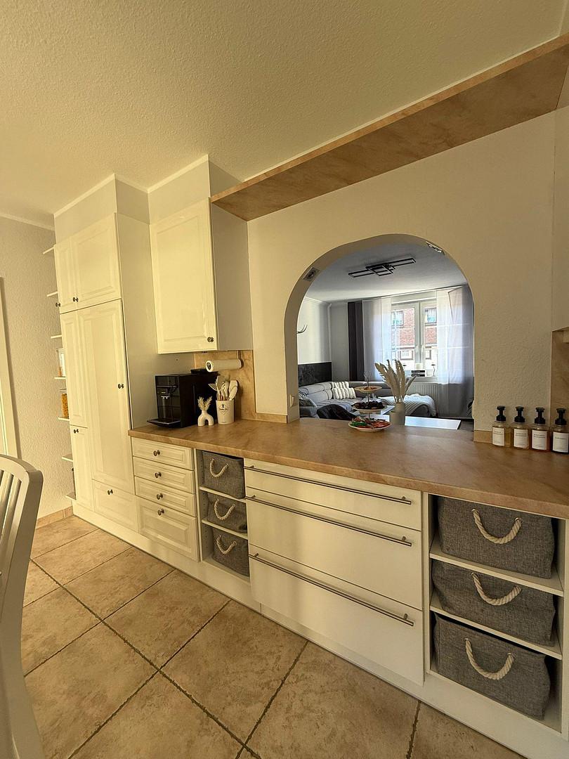 In der Küche befindet sich eine moderne Einbauküche in L-Form mit den Maßen 3,80 x 3,60 mtr. Sie ist mit allen Elektrogeräten ausgestattet und wird dem Mieter zur Nutzung überlassen.