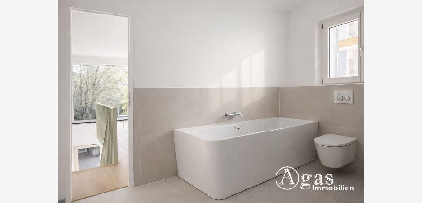 Die Außenanlagen befinden sich derzeit in den letzten Zügen der Fertigstellung und werden in Kürze finalisiert, sodass sich das Gesamtbild der Anlage in den kommenden Wochen vollständig abrunden wird. Ein Einzug ist im April möglich.