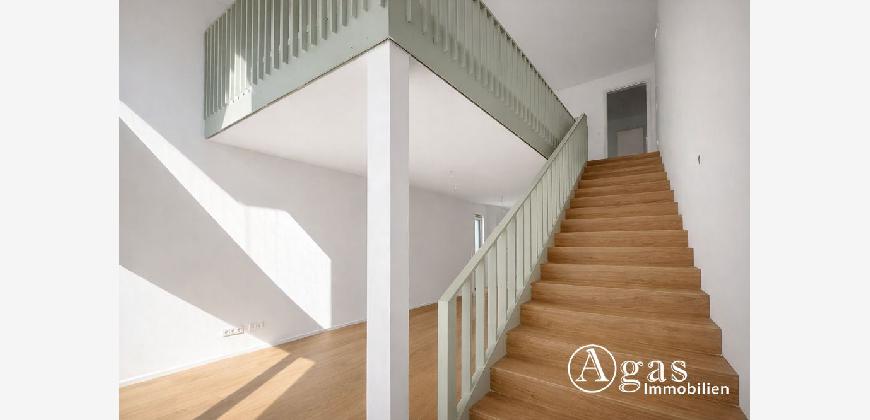 Bereits beim Eintreten spürt man die Großzügigkeit dieser besonderen Wohnung. Der offen gestaltete Wohn- und Essbereich mit Galerie schafft ein luftiges Raumgefühl und wird durch große Fensterflächen hervorragend belichtet. Hochwertige Eichendielen, stilvolle Holzfenster sowie eine angenehme Fußbodenheizung sorgen für ein behagliches Wohnambiente auf beiden Ebenen.