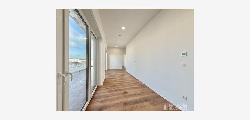 Diese Penthouse-Wohnung erstreckt sich über rund 145 m² Wohnfläche auf einer gesamten Etage und bietet damit ein Maß an Privatsphäre, das in dieser Form selten ist. Das Gebäude wurde erst vor wenigen Monaten fertiggestellt – die Wohnung wird erstmals bezogen.