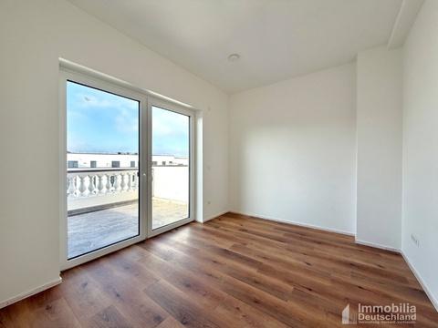 Die Außenbereiche sind klar gegliedert und vermitteln ein großzügiges, fast schon hausähnliches Wohngefühl. Entlang des Flurs und des Büros erstreckt sich eine etwa 30 m² große Terrasse, die sich perfekt als ruhiger Rückzugsort oder Arbeitsplatz im Freien eignet. Das Wohnzimmer verfügt über einen separaten Balkon, während beide Schlafzimmer Zugang zu einem weiteren, gemeinsam nutzbaren Balkon haben.